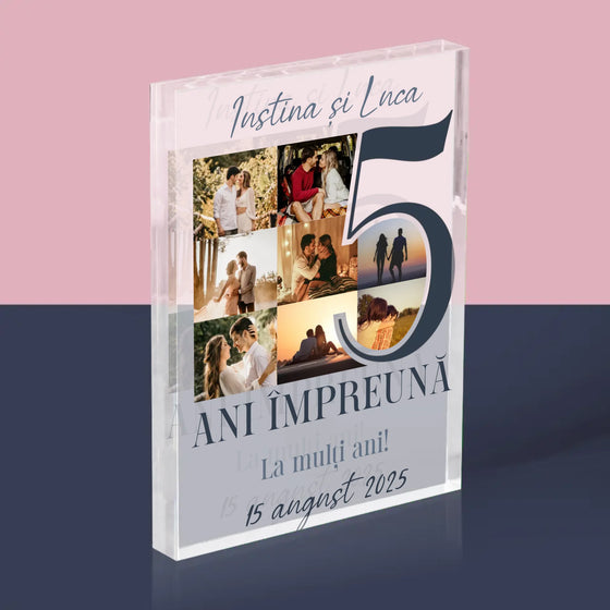 100 leipreț unitar /Nu este disponibilColaj De Fotografii: 5 Ani Împreună - Bloc acrilic - Vertical