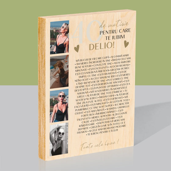 70 leipreț unitar /Nu este disponibilColaj De Fotografii: 40 Zi De Naștere Realizeați Dorințele - Imprimare pe lemn - verticală