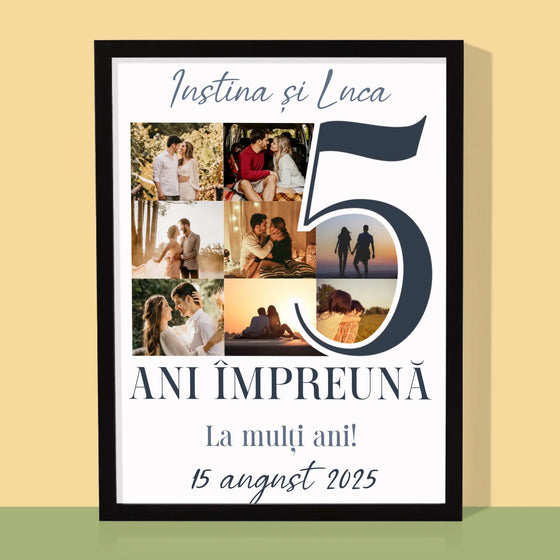 130 leipreț unitar /Nu este disponibilColaj De Fotografii: 5 Ani Împreună - Imprimare cu ramă 30x40 - verticală