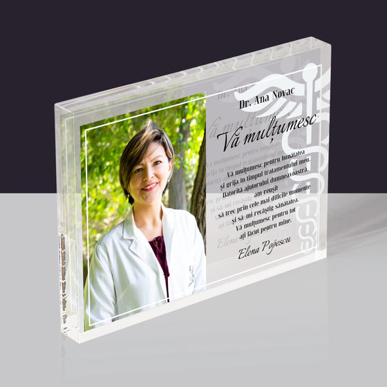 130 leipreț unitar /Nu este disponibilFotografie Si Semnătură: Doctore Vă Mulțumesc - Bloc acrilic - Horizontal