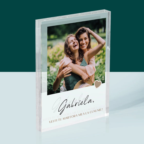 130 leipreț unitar /Nu este disponibilFotografie Si Semnătură: Fii Martora Mea La Cununie - Bloc acrilic - Vertical