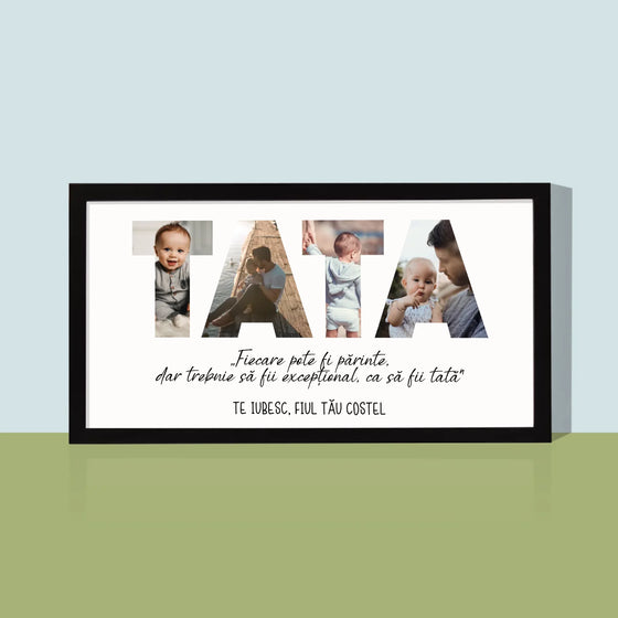 Visezi la un cadou neobi?nuit de Ziua Tatãlui? Iatã o propunere care va risipi toate îndoielile! Alege un cadou din fotografii de Ziua Tatãlui ?i surprinde-?i tatãl cu un suvenir unic care î?i va exprima toate sentimentele într-un mod unic. Piclo.ro este un loc în care fotografiile tale vor lua o nouã via?ã, devenind cadouri de neuitat pentru cea mai importantã persoanã din via?a ta. Cadourile foto de Ziua Tatãlui sunt o modalitate excelentã de a-?i exprima dragostea ?i recuno?tin?a într-un mod personal ?i original. Transformã-?i fotografiile preferate în cadouri unice care î?i vor aminti de momentele frumoase petrecute împreunã. Perne, cãni, brelocuri - posibilitã?ile sunt nesfâr?ite ?i efectul este întotdeauna încântãtor. Face?i Ziua Tatãlui din acest an mai specialã cu cadouri foto Fotografia dvs. pe un cadou nu este doar un decor, ci ?i o expresie a sentimentelor ?i sentimentelor profunde! Adaugã fotografiile tale preferate în albume, calendare sau rame pentru a crea cadouri unice care vor încânta inima fiecãrui tatã. Fiecare cadou foto de Ziua Tatãlui nu este doar un articol util, ci ?i un suvenir unic care va fi apreciat ani de zile Cadourile foto de Ziua Tatãlui disponibile la Piclo.ro sunt o garan?ie a unicitã?ii ?i calitã?ii. Oferim o selec?ie largã de produse personalizate care vor satisface a?teptãrile chiar ?i ale celor mai preten?io?i clien?i. Surprinde-?i tatãl cu o surprizã care va aduce zâmbet ?i emo?ie!