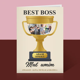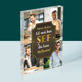 Sefii nu sunt doar oamenii care ne conduc echipele, ci si mentori si inspiratori. De aceea, meritã cadouri unice care sã reflecte recunoºtinþa ºi respectul nostru. Un cadou foto pentru ?eful tãu nu este doar o mul?umire pentru munca depusã, este ?i o expresie a aprecierii ?i a respectului. La Piclo.ro ve?i gãsi o selec?ie largã de cadouri personalizate care vã vor impresiona cu siguran?ã ?eful. Alegând un cadou cu fotografia lor preferatã sau un text dedicat, îl vei face nu doar un articol util, ci ?i un suvenir care le va aminti de momentele pe care le-ai împãrtã?it. Fotografia ta de pe cadou nu este doar o imagine - este un simbol al drumului ?i al realizãrilor tale comune. Fiecare cadou personalizat are o poveste ?i un sens care îl fac un cadou de neuitat. Descoperã oferta noastrã la Piclo.ro ?i fã cadoul tãu pentru ?eful tãu nu doar practic, ci ?i plin de emo?ii ?i sentimente. Oferã-le ceva care le va aminti de rela?ia ?i realizãrile tale speciale.