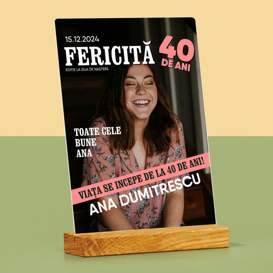20 leipreț unitar /Nu este disponibilCopertă Derevistă: Fericită La 40 De Ani - Imprimare pe sticlă acrilică