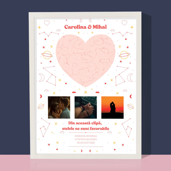O hartă stelară cadou este o modalitate unică de a surprinde cele mai frumoase momente din viață și de a le comemora într-un mod extraordinar. Pe Piclo.pl veți găsi o gamă largă de hărți stelare personalizate care vă vor face un cadou de neuitat pentru orice ocazie. Aceste cadouri foto unice vă permit să creați o hartă plină de amintiri și atingeri personale, făcându-le un cadou unic pentru orice iubitor de cer și astronomie Crearea unei hărți personalizate de stele pe Piclo.pl este simplă și intuitivă. Alegeți o dată și un loc care au o semnificație specială pentru dvs., apoi personalizați harta după bunul plac. Puteți alege diferite stiluri de hărți, culori și elemente suplimentare pentru a o face și mai personală. Aceasta este o modalitate excelentă de a crea un cadou cu o fotografie care va emoționa și va încânta destinatarul. O hartă a stelelor personalizată este mai mult decât un simplu decor. Este o poveste vizuală despre momente unice care merită păstrate pentru totdeauna. Personalizând harta în funcție de nevoile dvs., puteți crea o operă de artă unică care să reflecte amintirile și emoțiile dvs. legate de un anumit eveniment. Alegeți o dată și un loc care au o semnificație specială pentru dvs., adăugați text personalizat pentru a face din fiecare hartă un cadou foto unic și personal. Cadourile foto, cum ar fi hărțile stelelor personalizate, sunt, de asemenea, o modalitate excelentă de a vă reîmprospăta designul interior. O hartă stelară poate deveni un punct focal într-o cameră de zi, dormitor sau birou, adăugând o notă personală și o atmosferă unică interiorului. Fiecare privire asupra hărții vă va aminti de bucurie, dragoste și momente frumoase petrecute sub același cer. Poți crea o hartă a stelelor a zilei în care te-ai întâlnit, a nunții sau a nașterii copilului tău și o poți oferi ca un cadou unic. Un astfel de cadou foto nu este doar un decor frumos, ci și un simbol al momentelor și locurilor comune care sunt importante pentru dvs. La Piclo.pl vă oferim o varietate de opțiuni de personalizare care vă permit să ajustați harta la nevoile dvs. Puteți alege o hartă într-un stil minimalist, clasic, modern și multe alte stiluri. În plus, posibilitatea de a adăuga text personalizat, date sau ștampile speciale face din fiecare hartă o operă de artă unică, pe care o puteți personaliza după propriile amintiri și gust. Aceasta este o poveste despre momente și locuri importante care merită păstrate pentru totdeauna. Fiecare hartă este unică și plină de emoție, ceea ce o face un cadou perfect pentru cei dragi. Fie că este vorba de ziua în care te-ai întâlnit, de data nunții sau de nașterea copilului tău - fiecare hartă vă poate aminti de aceste momente speciale sub cerul înstelat. Poți implica întreaga familie alegând date și locuri care au o semnificație specială pentru tine. Este o modalitate grozavă de a petrece timp împreună și de a crea ceva care va avea o semnificație personală pentru fiecare dintre voi. Hărțile noastre personalizate sunt create cu cea mai mare atenție la detalii. Folosim doar cele mai bune materiale și tehnici moderne de imprimare pentru a asigura durabilitatea și claritatea fiecărui produs. Acest lucru vă va păstra hărțile frumoase pentru anii următori, cu fiecare detaliu clar și vibrant. O hartă cu stele este, de asemenea, o modalitate excelentă de a sărbători momentele importante din viață. Acestea pot comemora locurile și datele în care au avut loc evenimente importante, precum nunți, nașteri, aventuri de vacanță sau alte momente speciale. Pe Piclo.pl poți crea o hartă care să reflecte cu acuratețe amintirile și emoțiile tale care au însoțit aceste momente speciale Hărțile stelare personalizate sunt cadoul perfect pentru oricine apreciază cadourile originale și emoționante. Fiecare hartă poate fi personalizată pentru a se potrivi preferințelor dumneavoastră individuale, făcându-l un mod unic de a vă exprima sentimentele și de a vă împărtăși amintirile. Acestea sunt cadouri cu o fotografie care spun mai mult de o mie de cuvinte Nu mai aștepta și creează-ți harta stelară unică pe Piclo.pl. Oferim o gamă largă de stiluri și opțiuni de personalizare, astfel încât fiecare să poată găsi ceva perfect pentru ei înșiși. Nu este doar un cadou, este un suvenir pentru o viață care ne va aminti mereu de dragostea și bucuria pe care ni le aduc amintirile noastre. O hartă a stelelor este, de asemenea, o modalitate perfectă de a păstra amintirile din diferite etape ale vieții. Poți crea o hartă a zilei în care te-ai întâlnit, a nunții tale, a nașterii copilului tău sau a altor momente speciale. Fiecare hartă va fi unică și plină de emoții, ceea ce o va face nu doar un decor frumos, ci și un suvenir valoros La Piclo.pl vă oferim o varietate de formate și materiale pe care vă puteți comanda hărțile personalizate. Puteți alege dintre imprimeuri pe pânză, metal, sticlă acrilică și lemn. Fiecare dintre aceste materiale conferă hărții un caracter diferit și o face un element decorativ unic. Capacitatea de a alege formatul și materialul potrivit vă permite să potriviți perfect harta cu interiorul și stilul de viață al destinatarului. Ele pot fi o expresie frumoasă de recunoștință, dragoste și prietenie. Hărțile personalizate sunt perfecte pentru o varietate de ocazii, de la zile de naștere la aniversări la sărbători. Acestea sunt cadouri care spun mai mult decât cuvinte, surprinderea celor mai importante locuri și emoții. Crearea de hărți personalizate pe Piclo.pl este un proces simplu și plăcut. Pur și simplu selectați data și locația pe care doriți să le capturați pe hartă, apoi personalizați aspectul și designul după preferințele dvs. Abilitatea de a adăuga text, date și mesaje person
