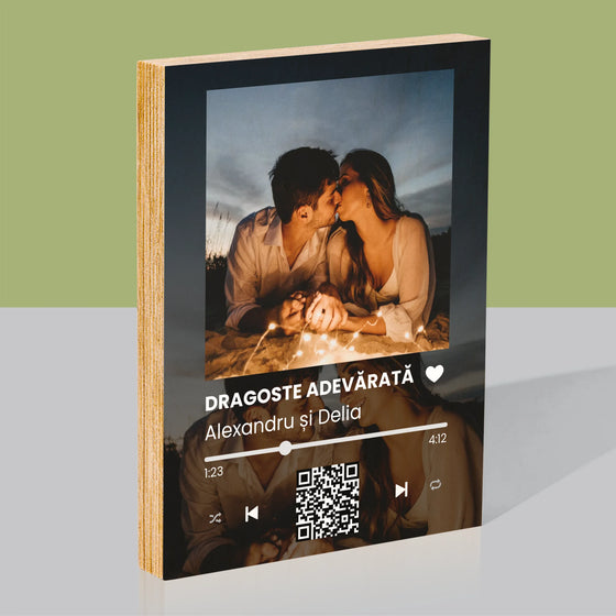 80 leipreț unitar /Nu este disponibilFotografie Si Semnătură: Spotify Cu Fotografiile Tale Și Codul Qr - Imprimare pe lemn - verticală