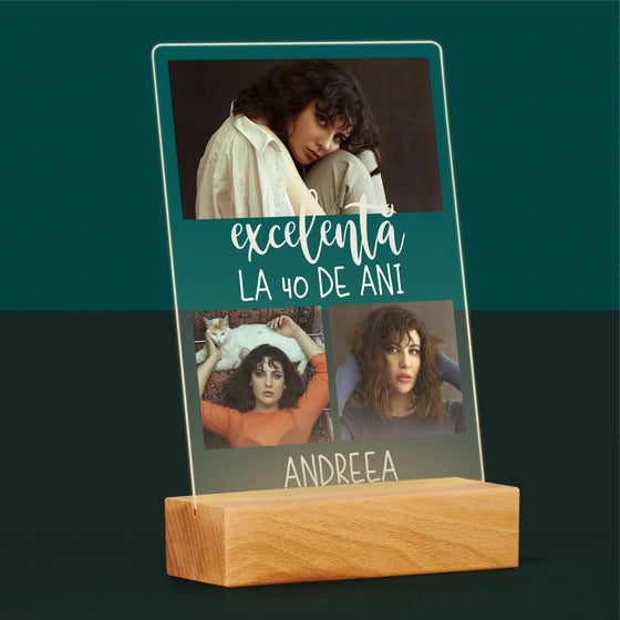 85 leipreț unitar /Nu este disponibilColaj De Fotografii: Excelentă La 40 De Ani - Imprimare pe sticlă acrilică LED