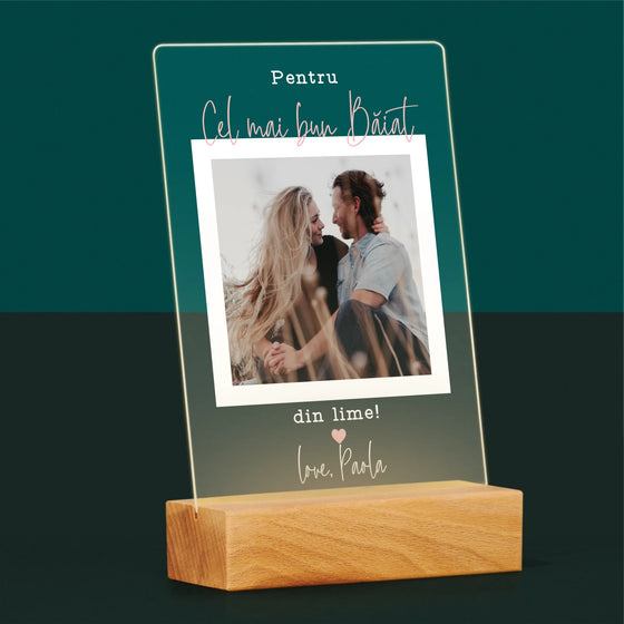 85 leipreț unitar /Nu este disponibilFotografie Si Semnătură: Pentru Cel Mai Bun Băiat - Imprimare pe sticlă acrilică LED