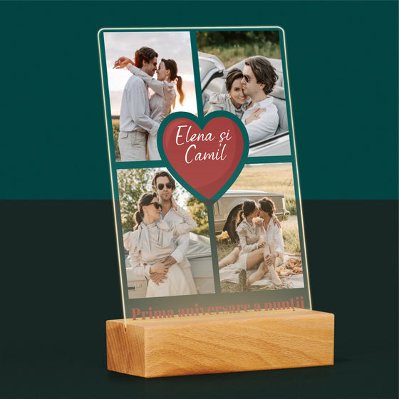 85 leipreț unitar /Nu este disponibilColaj De Fotografii: Prima Aniversare A Nunții – Inimă - Imprimare pe sticlă acrilică LED