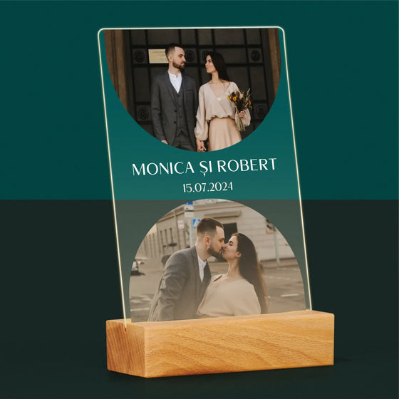 Colaj De Fotografii: Data Nunții - Imprimare pe sticlă acrilică LED