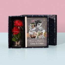 160 leipreț unitar /Nu este disponibilFormă Din Fotografii: Cuplu Îndrăgostit - Set cadou cu imprimare pe sticlă și trandafirul etern