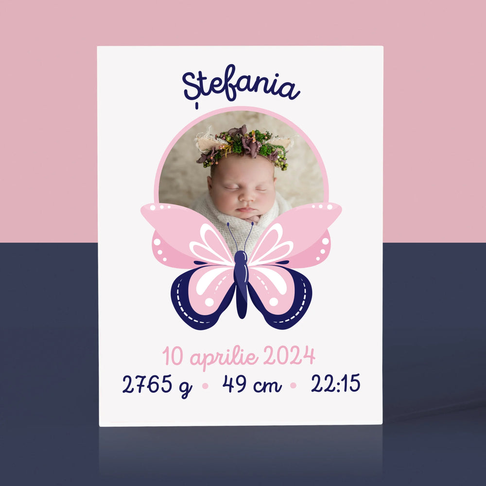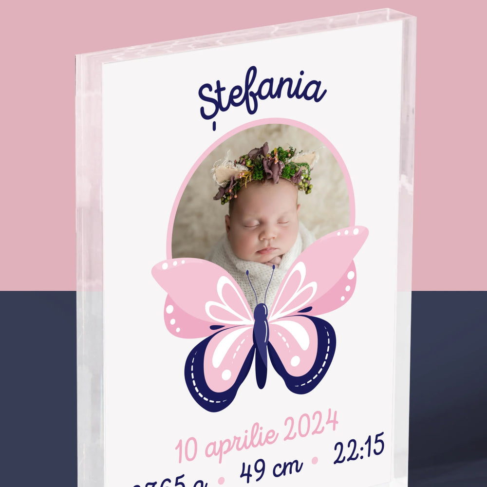 Certificat De Naștere: Certificat De Naștere Fluturaș - Bloc acrilic - Vertical