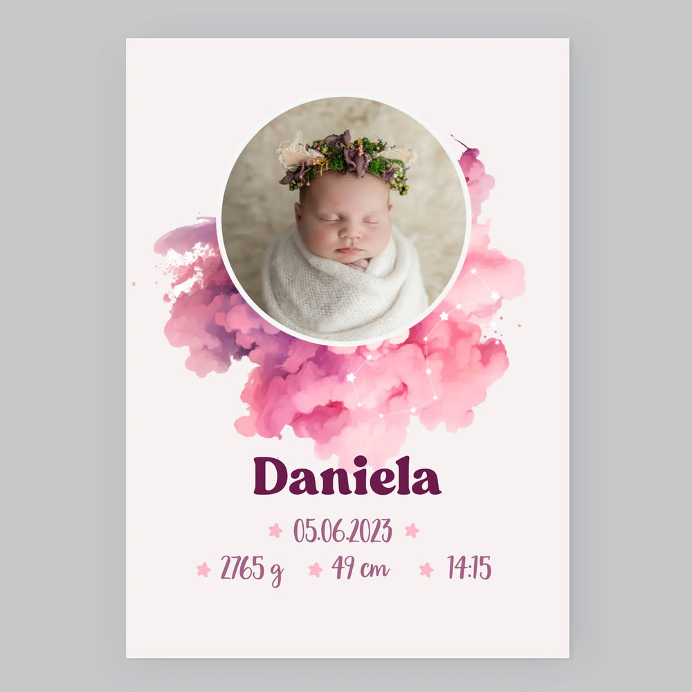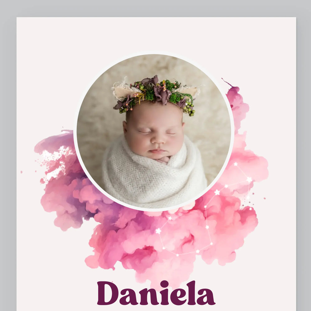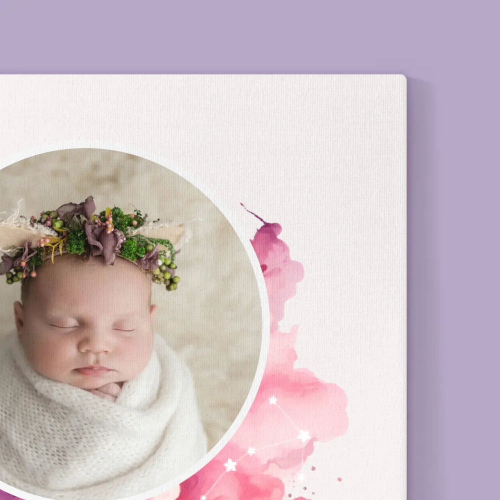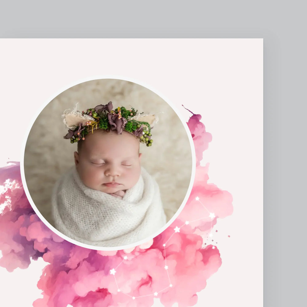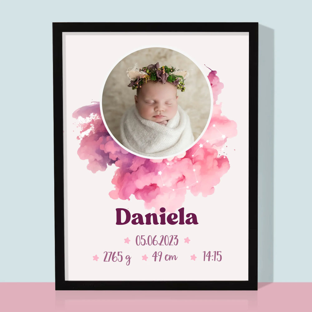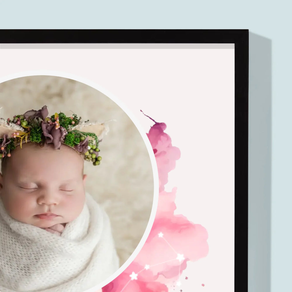 Certificat De Naștere: Zodiac Fetiță - Imprimare Cu Ramă 30X40 (Verticală)