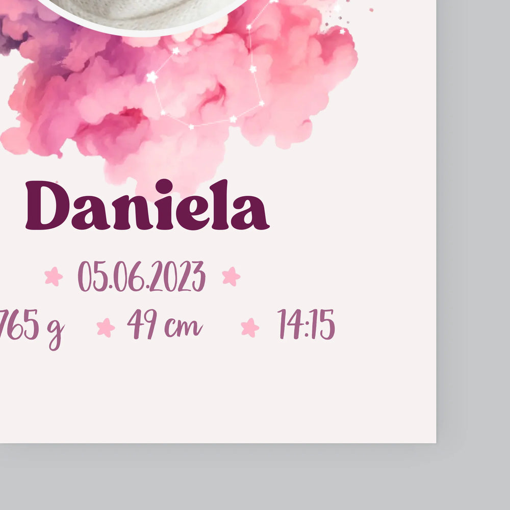 Certificat De Naștere: Zodiac Fetiță - Imprimare cu ramă 30x40 - verticală