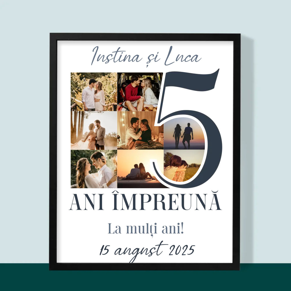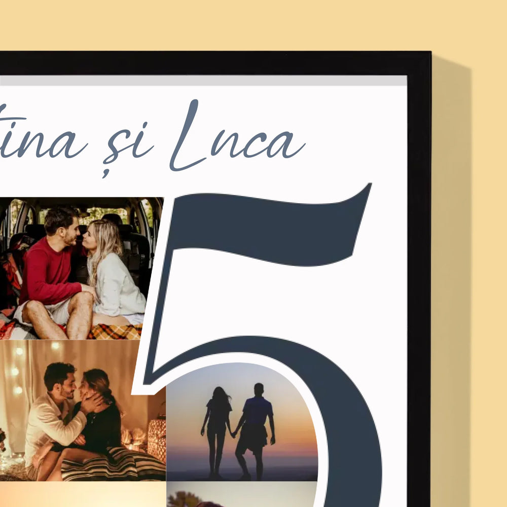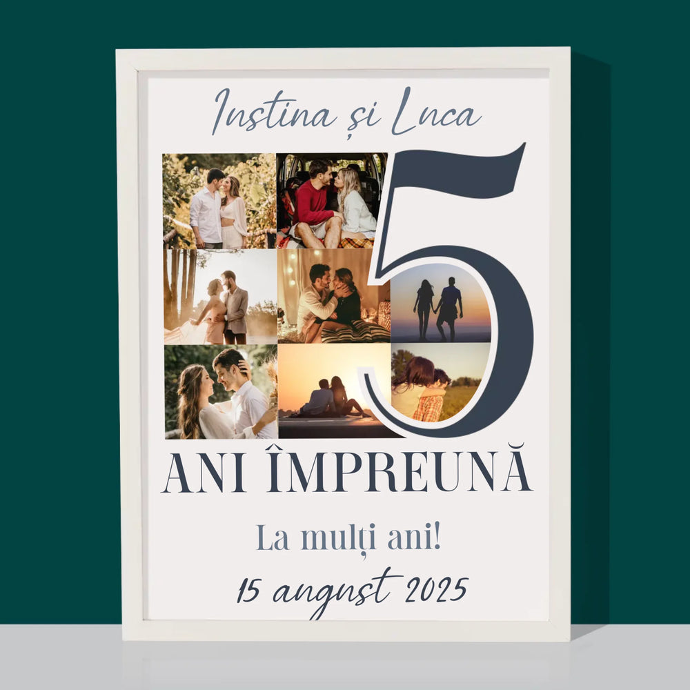 Colaj De Fotografii: 5 Ani Împreună - Imprimare cu ramă 30x40 - verticală