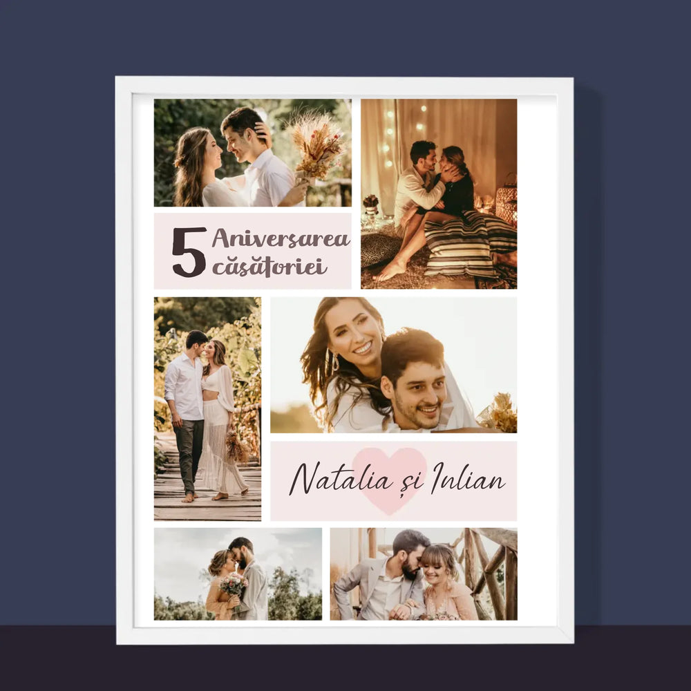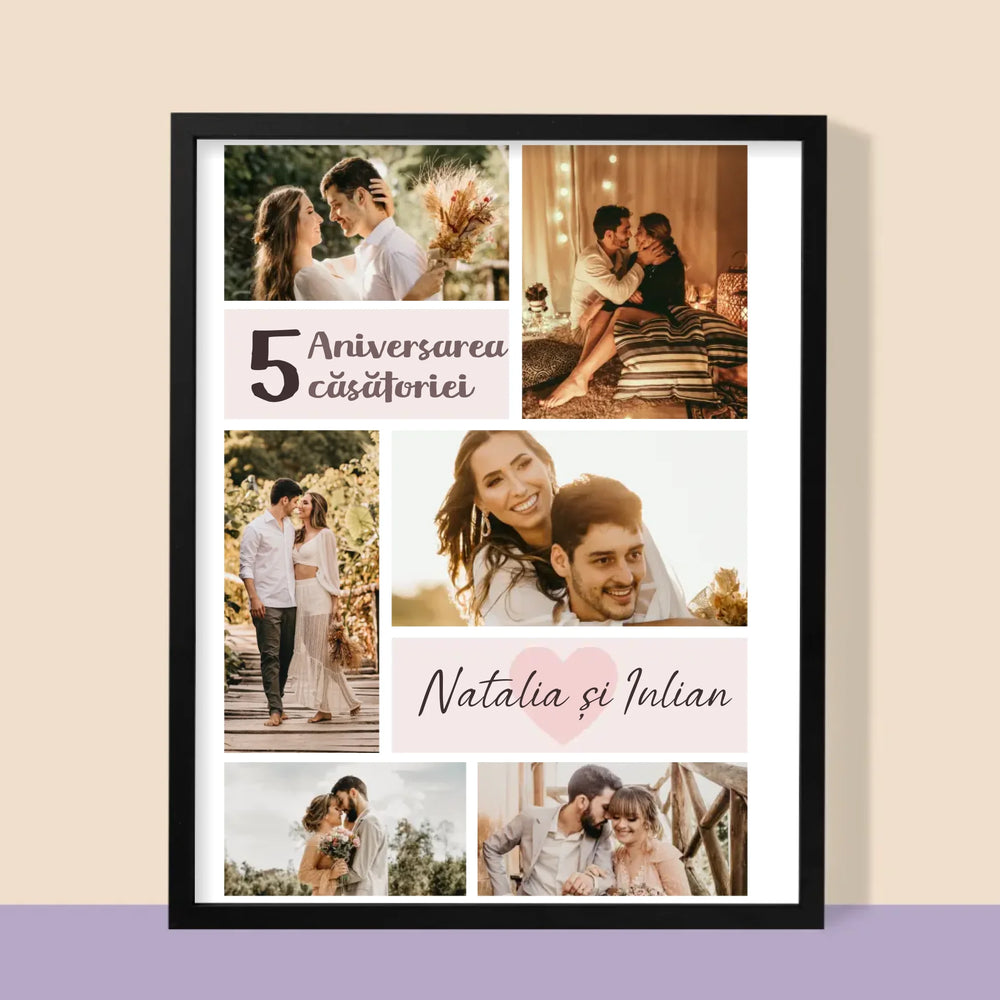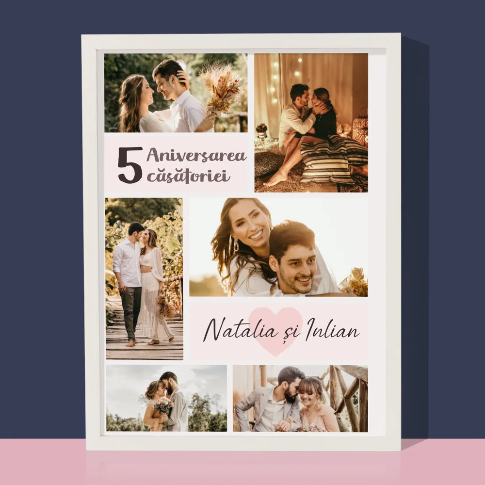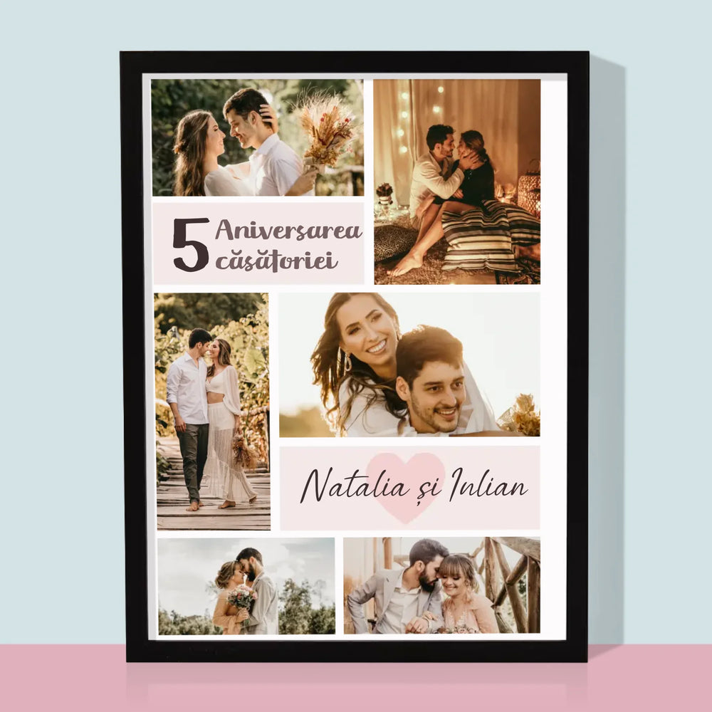 Colaj De Fotografii: A 5-A Aniversare A Nunții - Imprimare cu ramă 30x40 - verticală