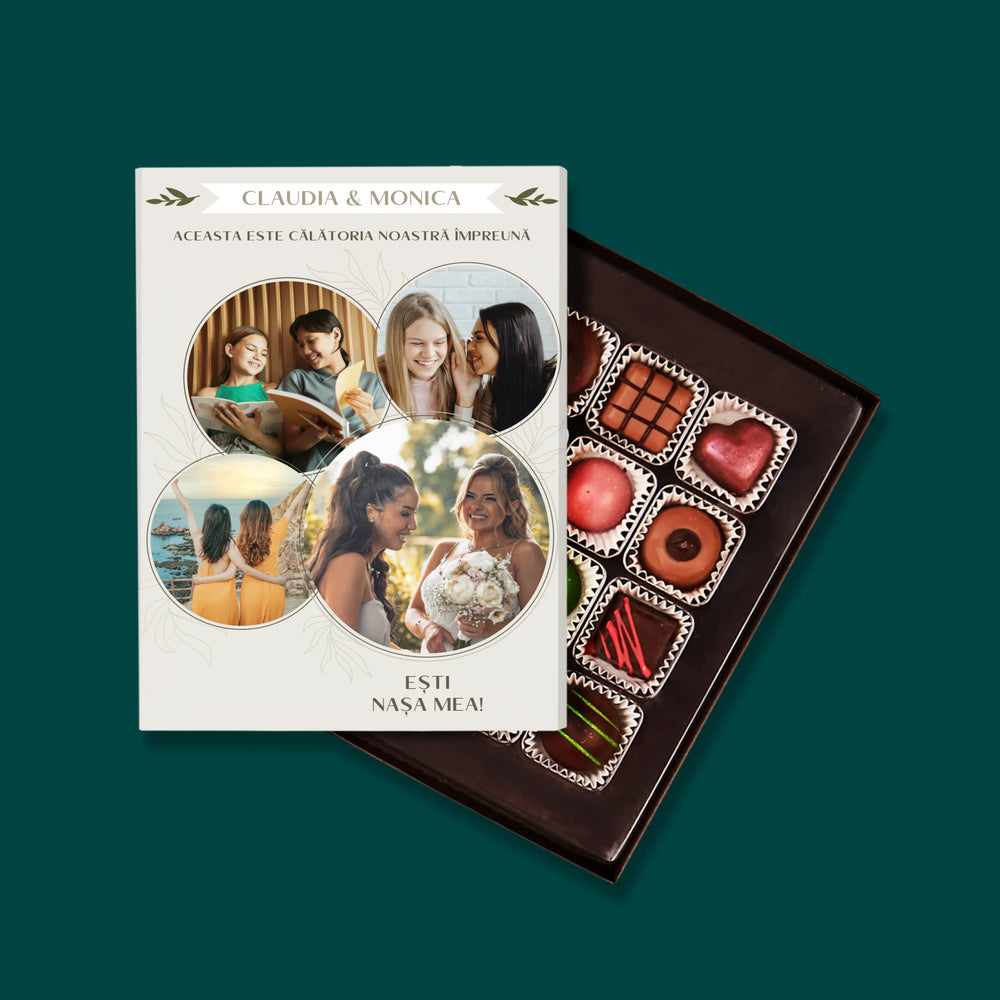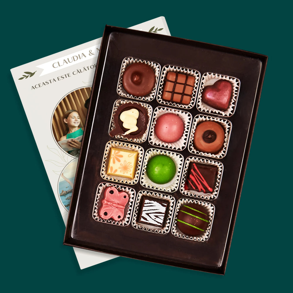 • Dimensiuni: 20x15x3,5 cm. Număr pralină: 12.