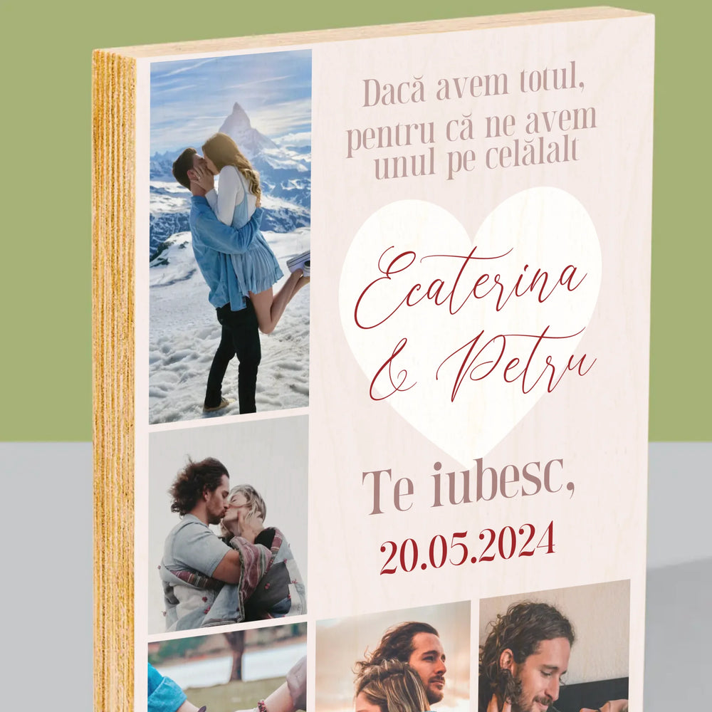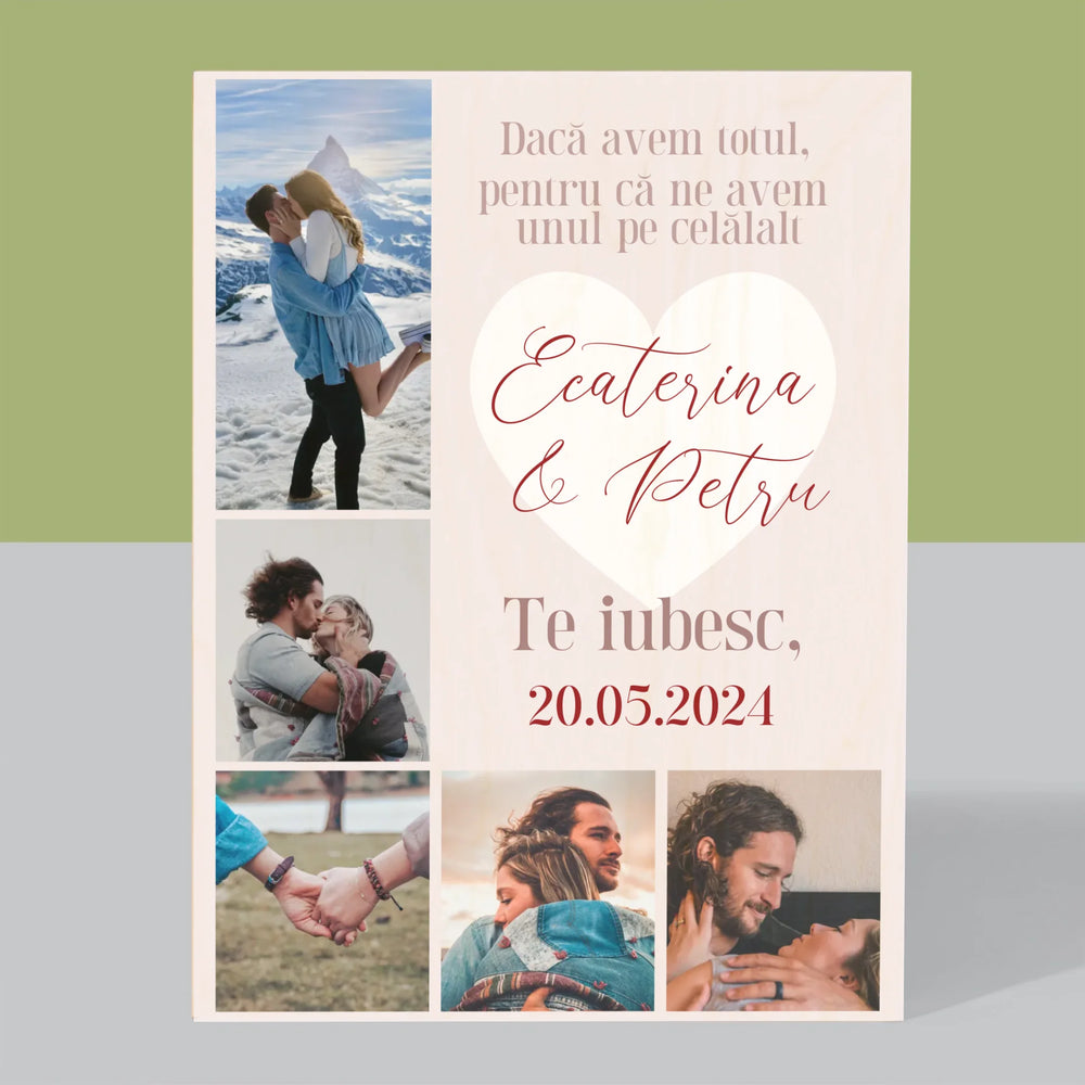 Colaj De Fotografii: Avem Totul, Pentru Că Ne Avem Unul Pe Celălalt - Imprimare pe lemn - verticală