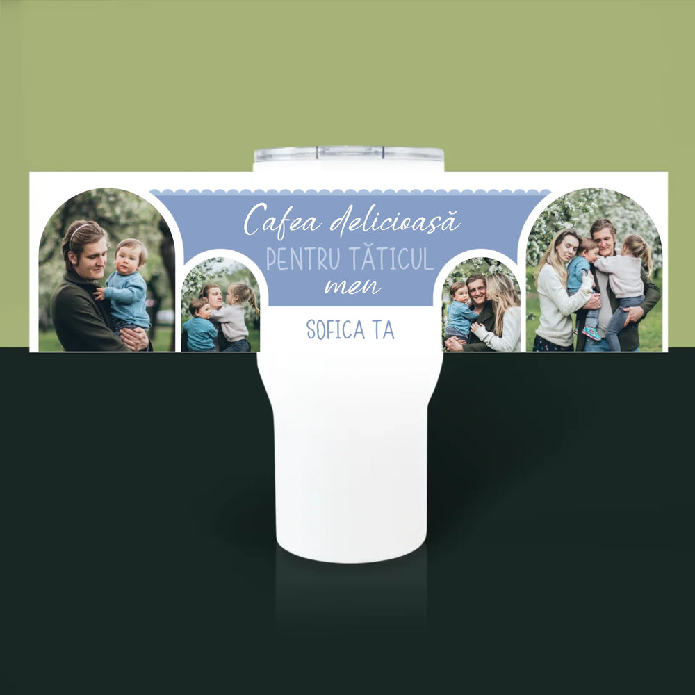 Colaj De Fotografii: Cafea Delicioasă Tăticule - Cană termică albă
