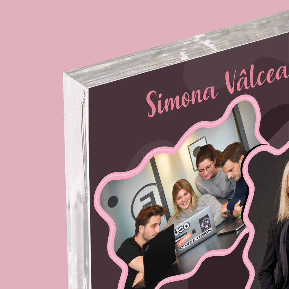 Imprimați pe un bloc acrilic transparent (plexiglas) de 2 cm grosime pentru a vă personaliza modelul.