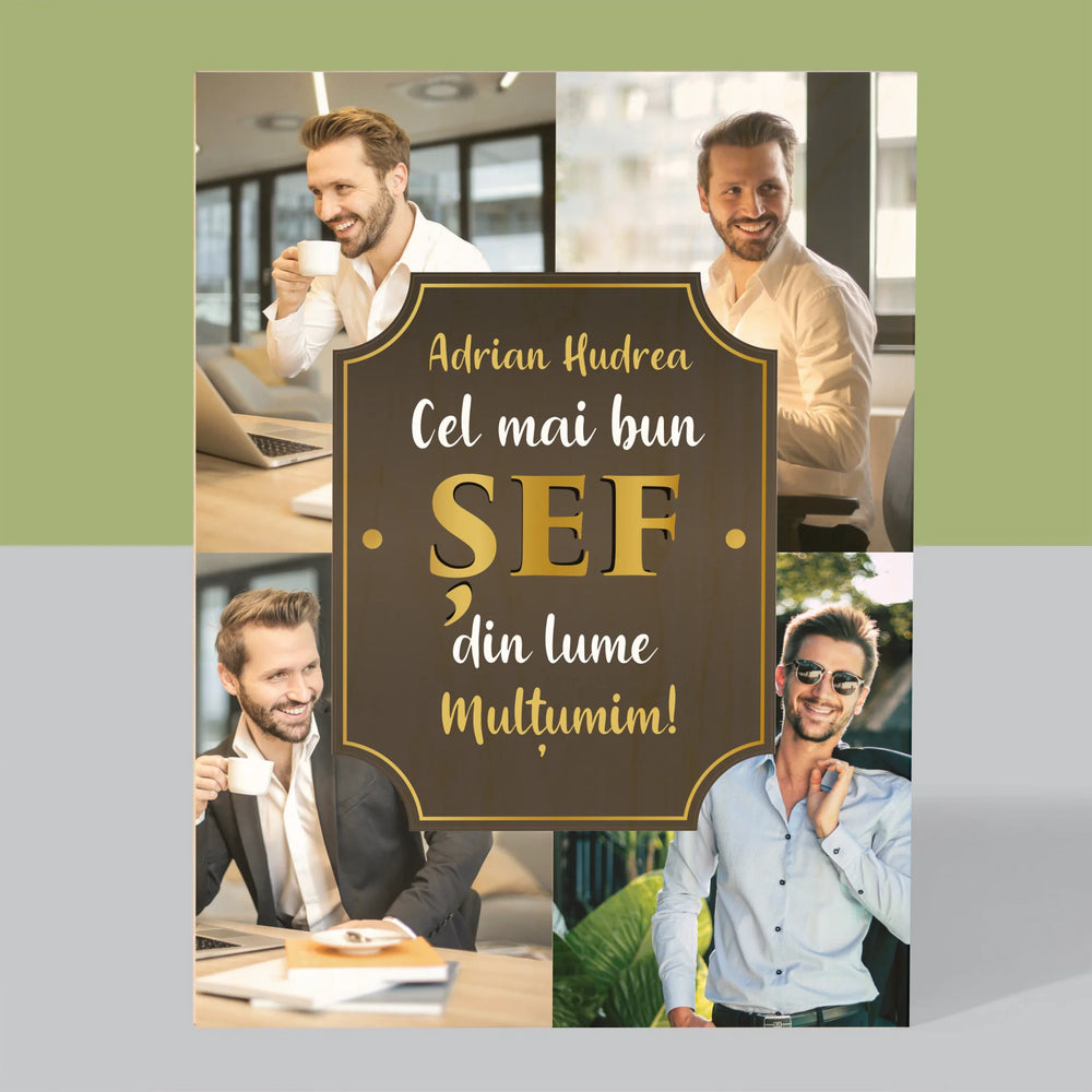 Colaj De Fotografii: Cel Mai Bun Șef Din Lume - Imprimare pe lemn - verticală