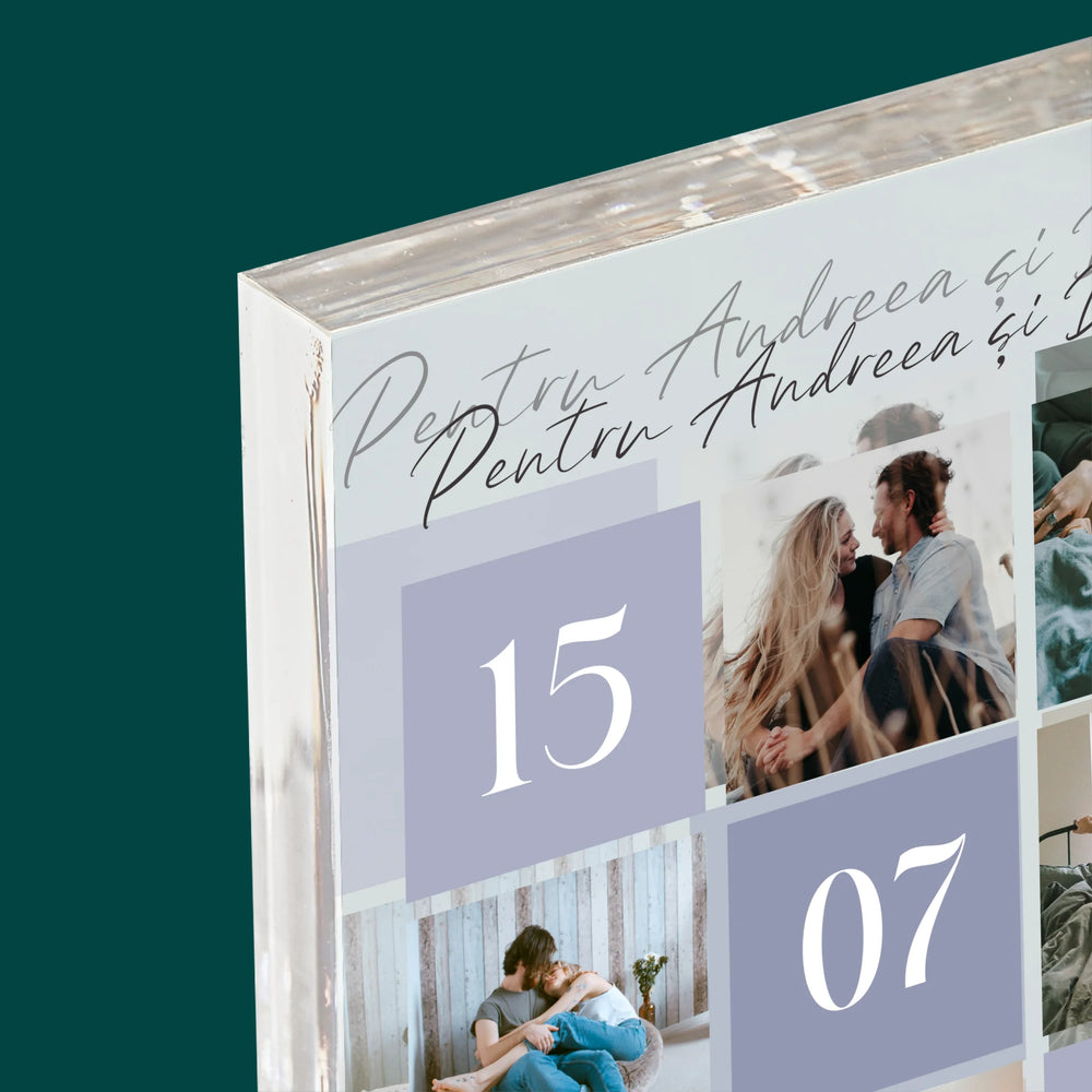 Imprimare pe un bloc acrilic transparent de 2 cm grosime (plexiglas) cu un model personalizat la alegere.