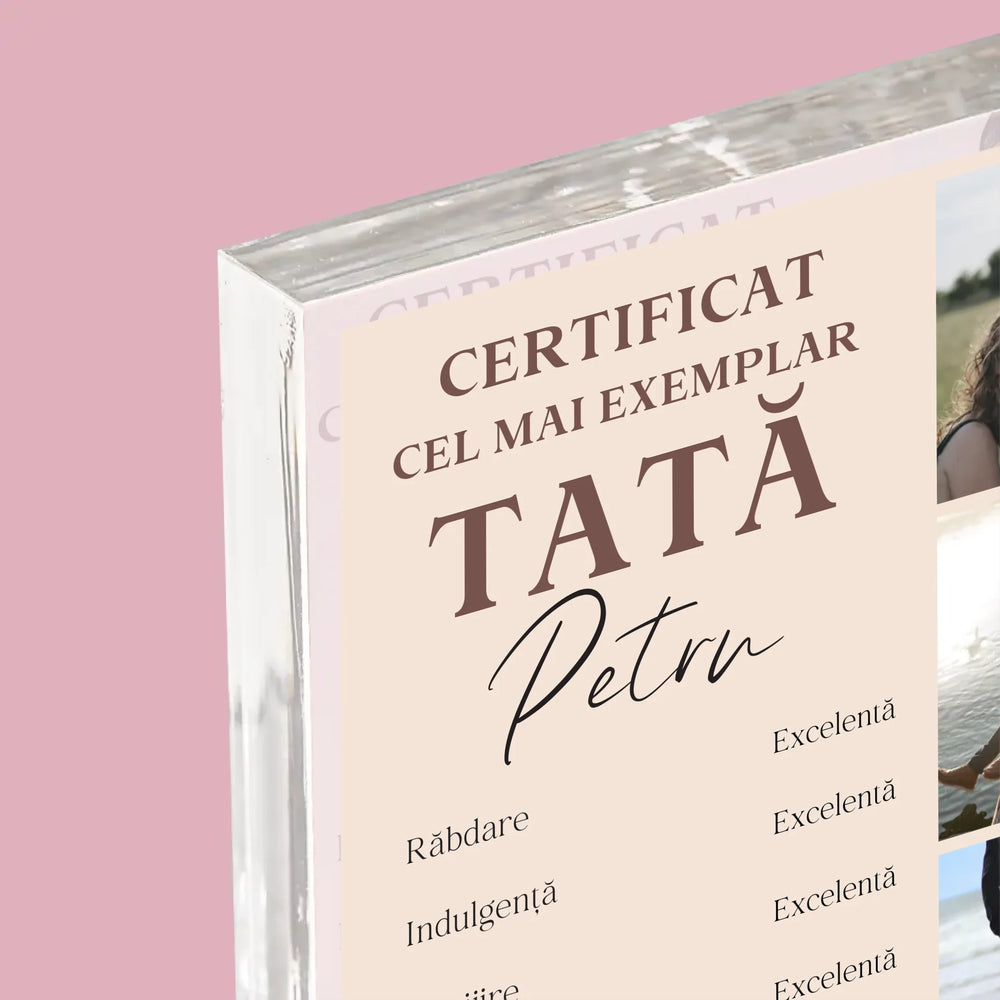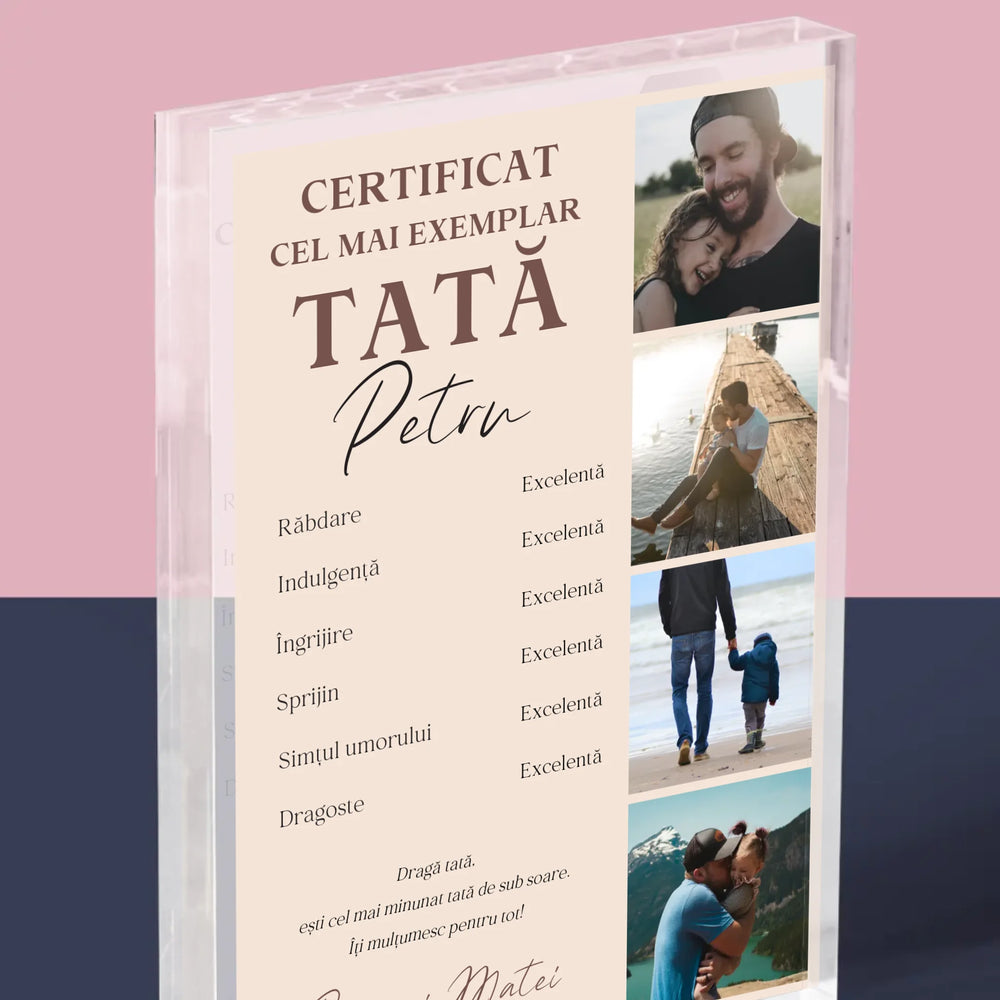 Colaj De Fotografii: Certificat De Tată Exemplar - Bloc acrilic - Vertical