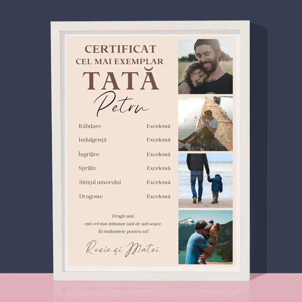 Colaj De Fotografii: Certificat De Tată Exemplar - Imprimare cu ramă 30x40 - verticală