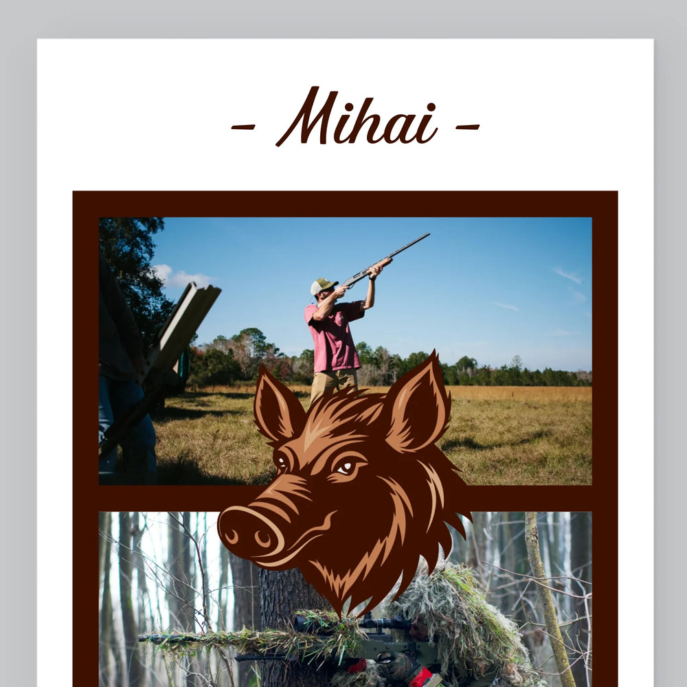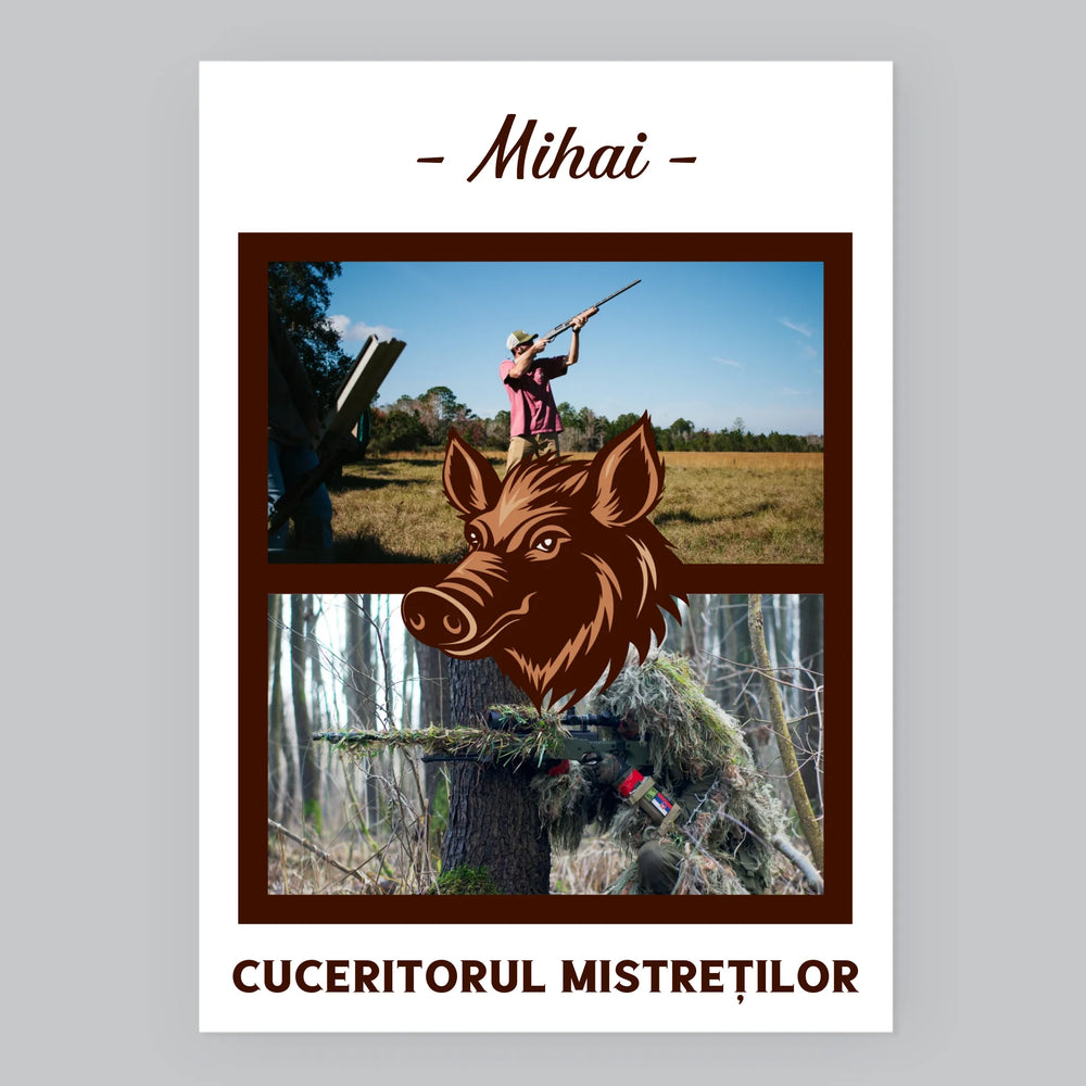 Colaj De Fotografii: Cuceritorul Mistreților - Imprimare cu ramă 30x40 - verticală