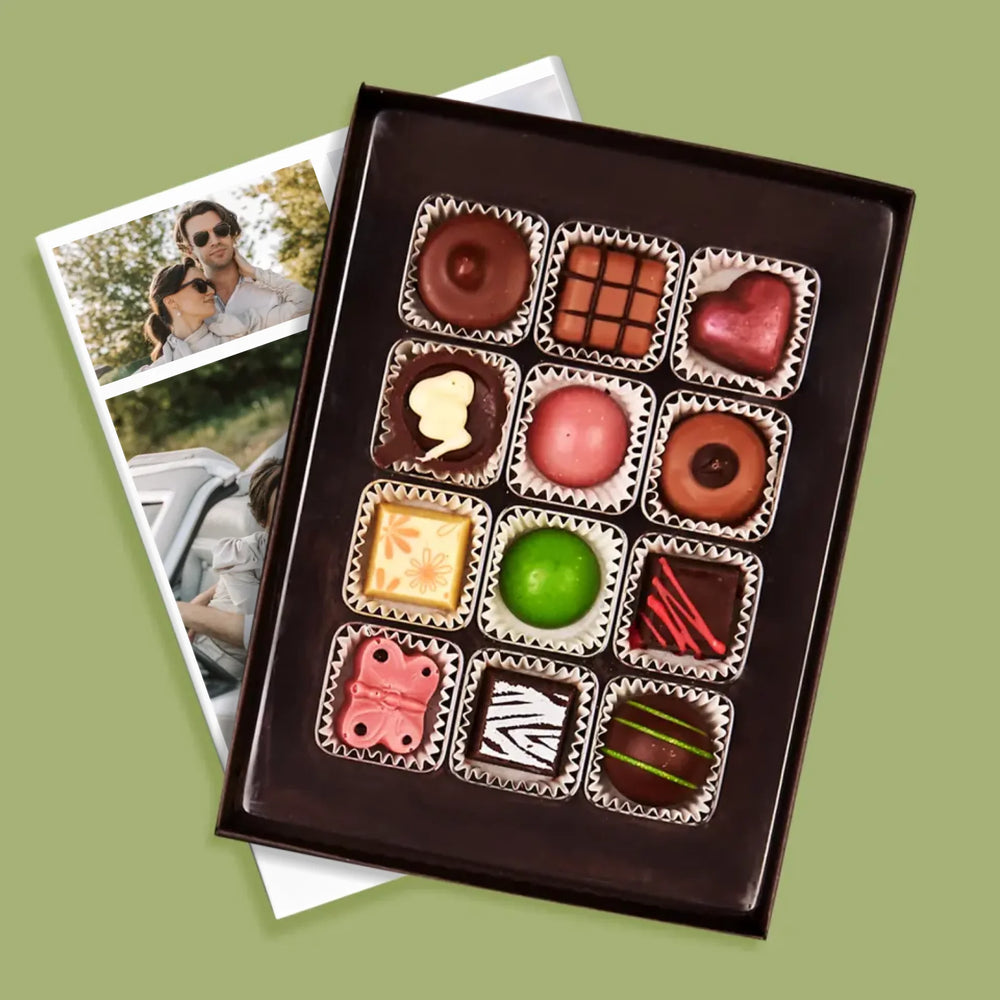 Praline de ciocolată belgiană delicioasă într-o tăietură elegantă pentru a vă personaliza casa.