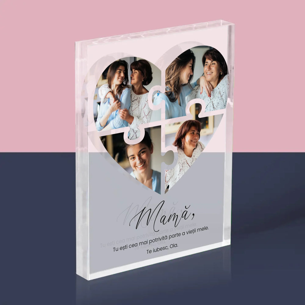 Colaj De Fotografii: Inimă Puzzle Pentru Mama - Bloc acrilic - Vertical