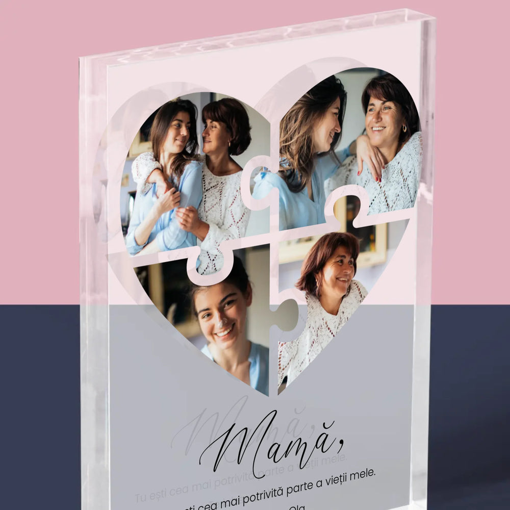 Colaj De Fotografii: Inimă Puzzle Pentru Mama - Bloc Acrilic