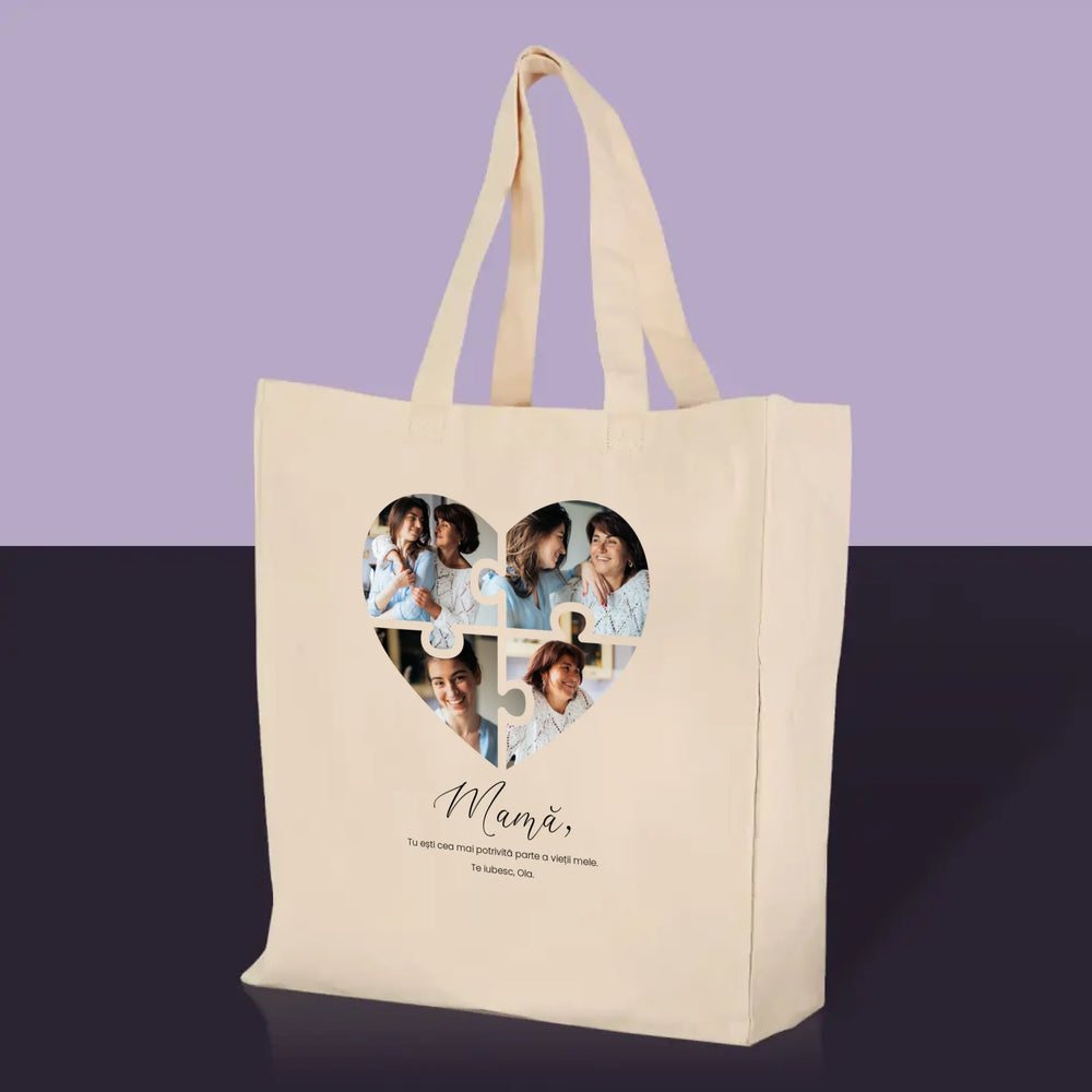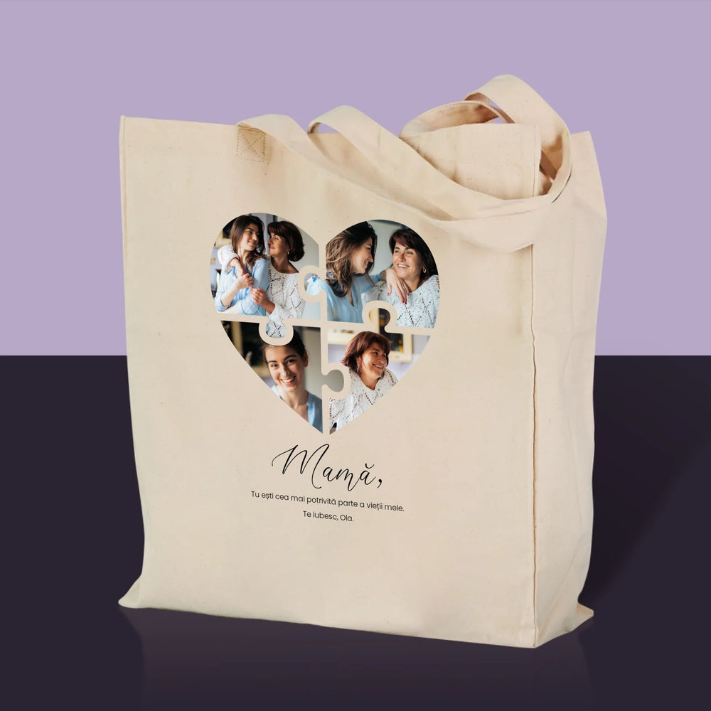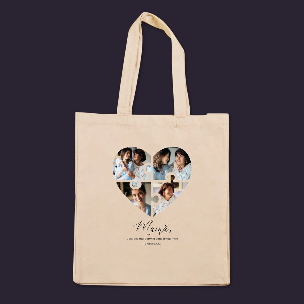 Colaj De Fotografii: Inimă Puzzle Pentru Mama - Sacoșă de pânză