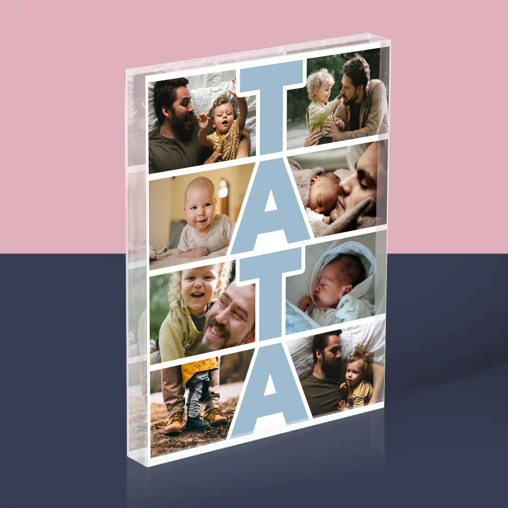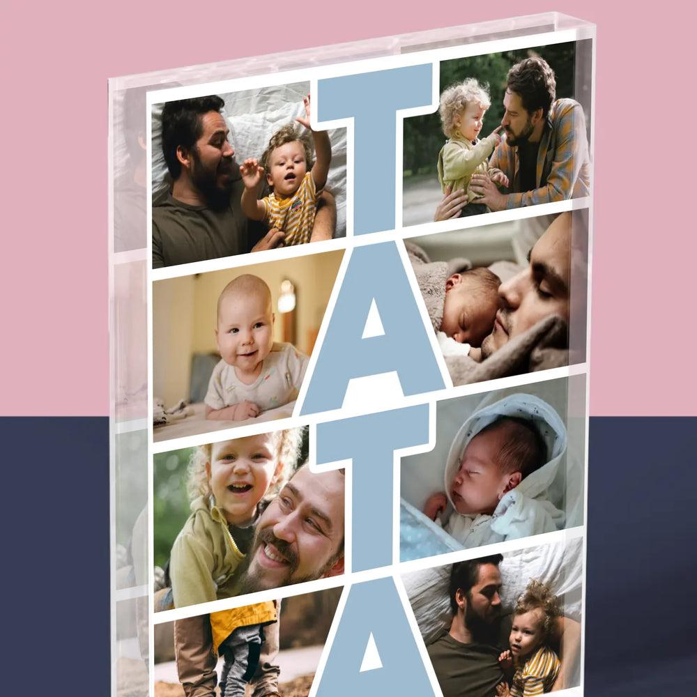 Colaj De Fotografii: Inscripție Tata - Bloc acrilic - Vertical