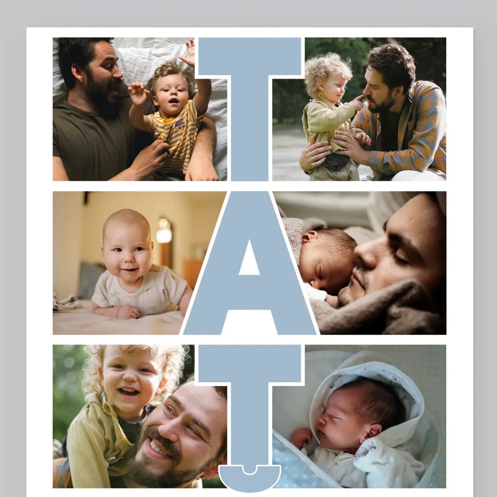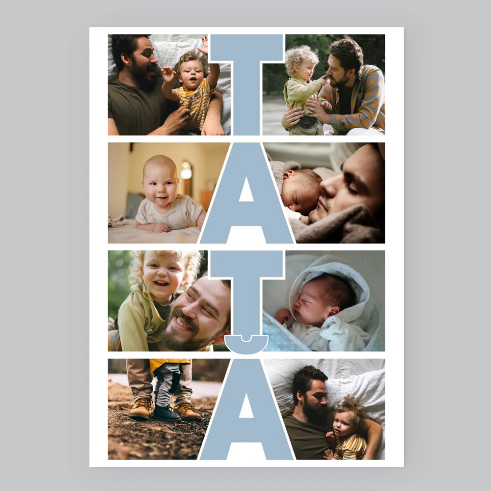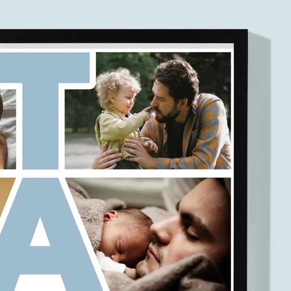 Colaj De Fotografii: Inscripție Tata - Imprimare cu ramă 30x40 - verticală