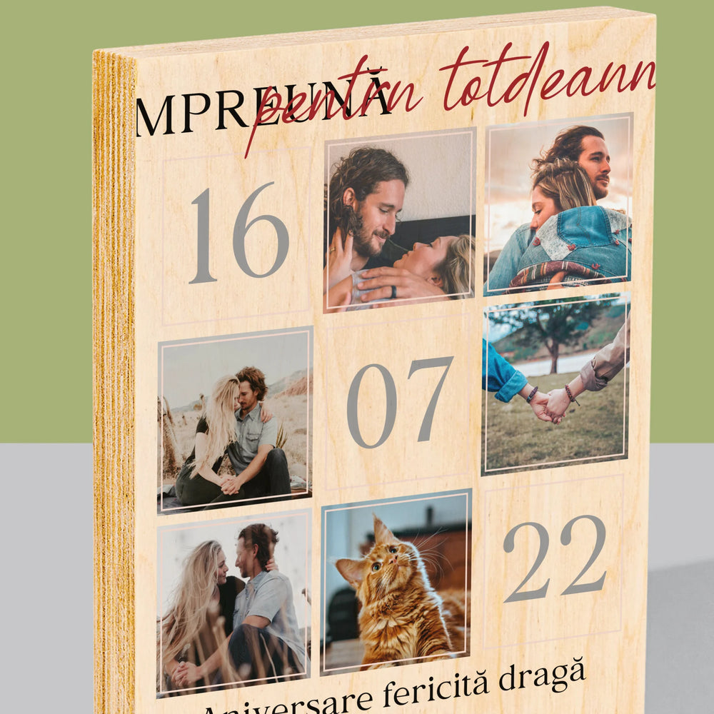 Colaj De Fotografii: Împreună Pentru Totdeauna! - Imprimare pe lemn - verticală