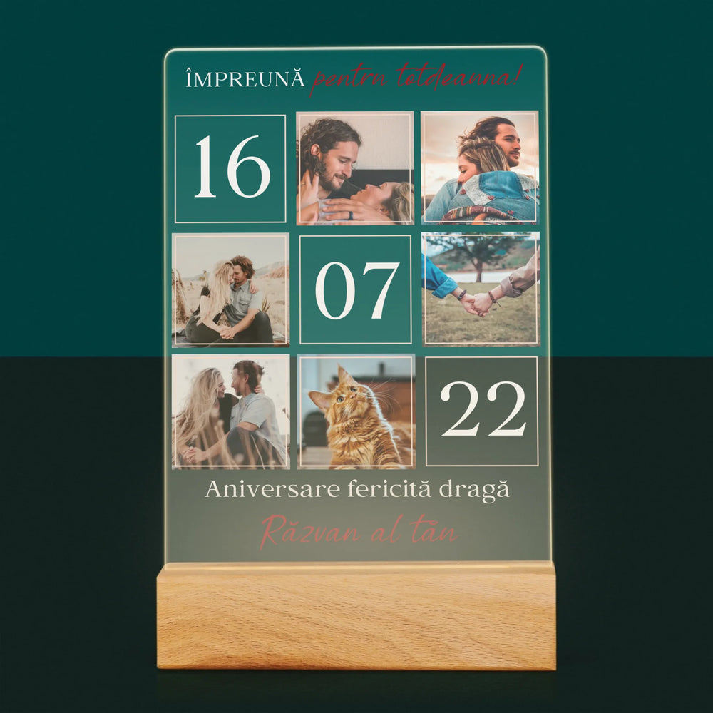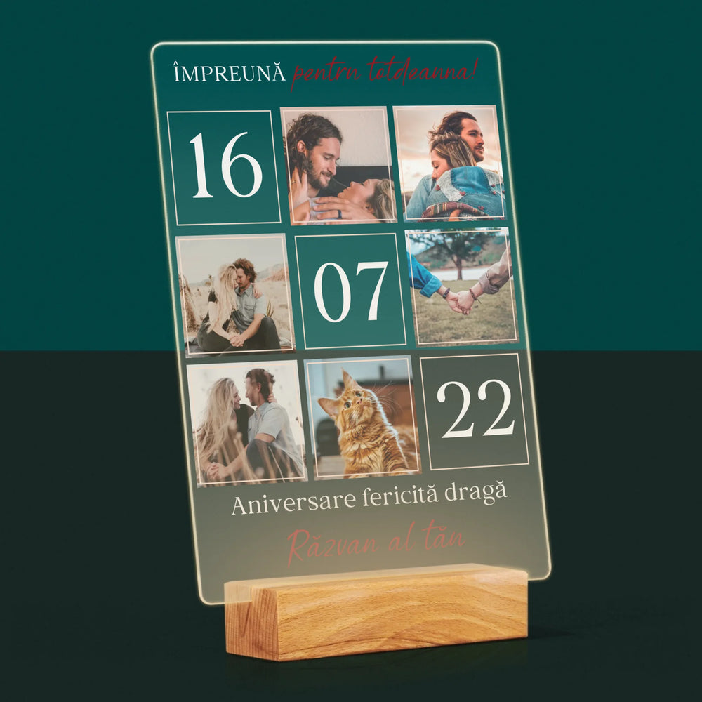 Colaj De Fotografii: Împreună Pentru Totdeauna! - Imprimare pe sticlă acrilică LED
