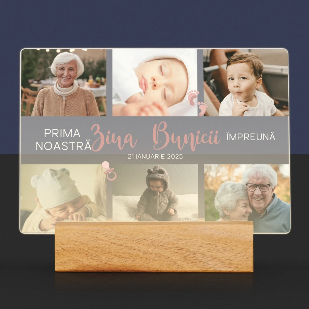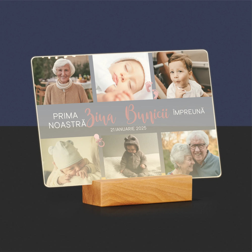 Colaj De Fotografii: Prima Zi A Bunicii - Imprimare pe sticlă acrilică - horizontală