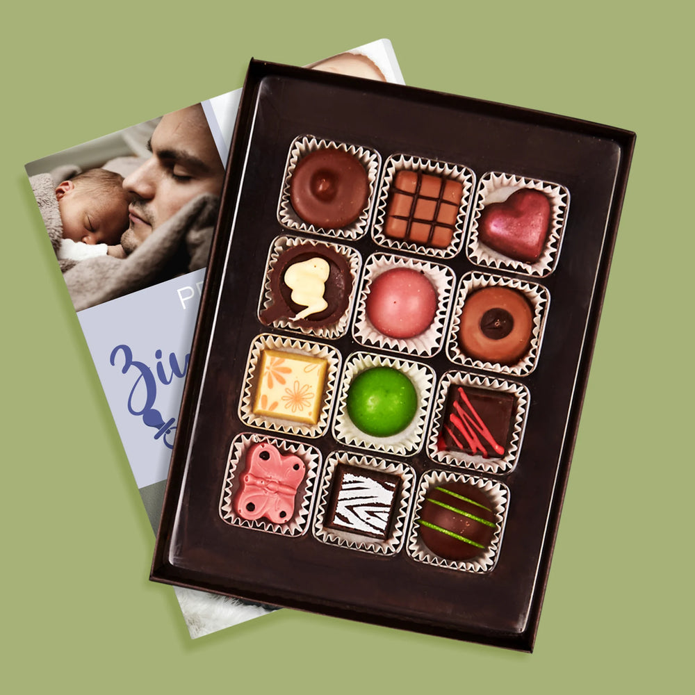 Praline de ciocolată belgiană delicioasă într-o tăietură elegantă pentru a vă personaliza casa.