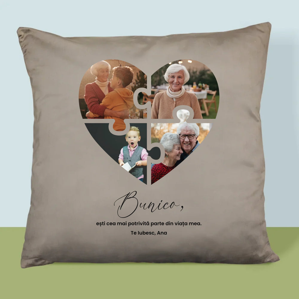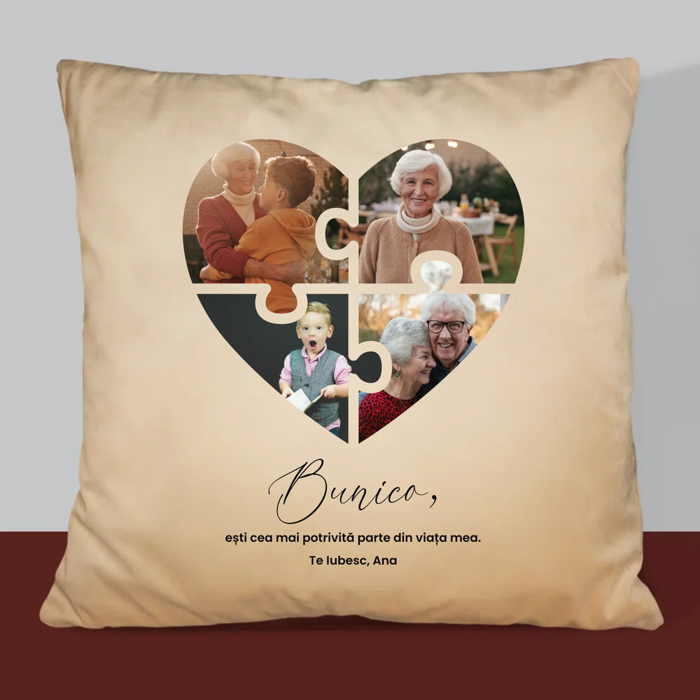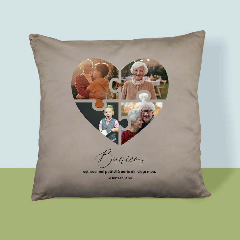 Colaj De Fotografii: Puzzle Inimă Pentru Bunică - Pernă