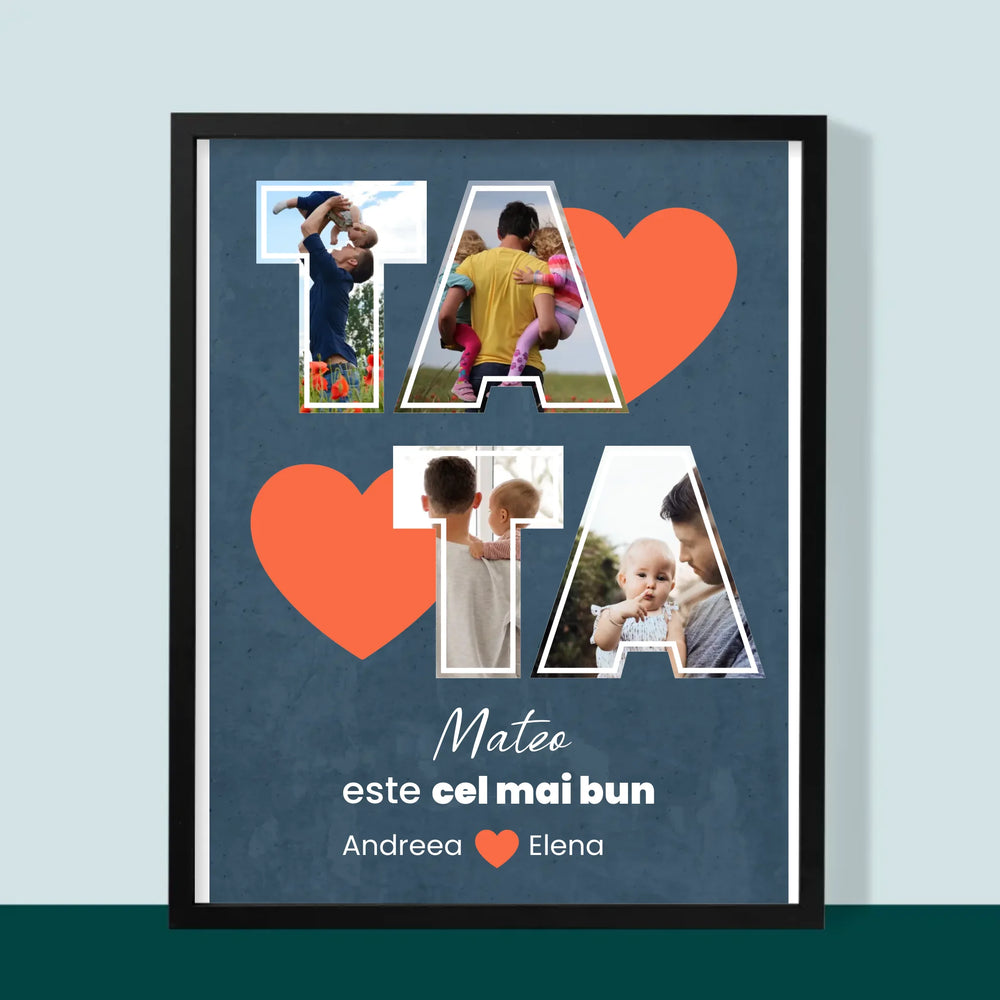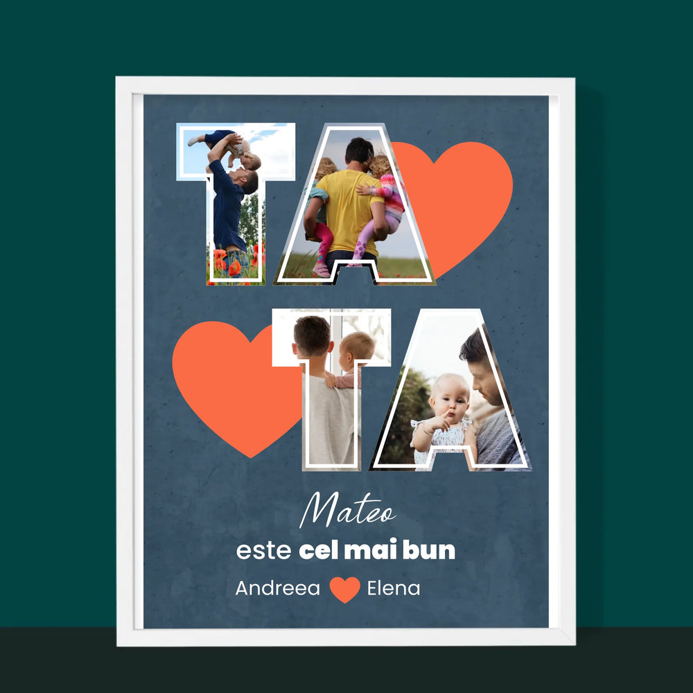 Colaj De Fotografii: Tata Este Cel Mai Bun - Imprimare cu ramă 30x40 - verticală