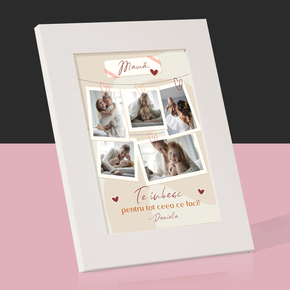 • O ramă pentru fotografii la alegere cu model personalizat.