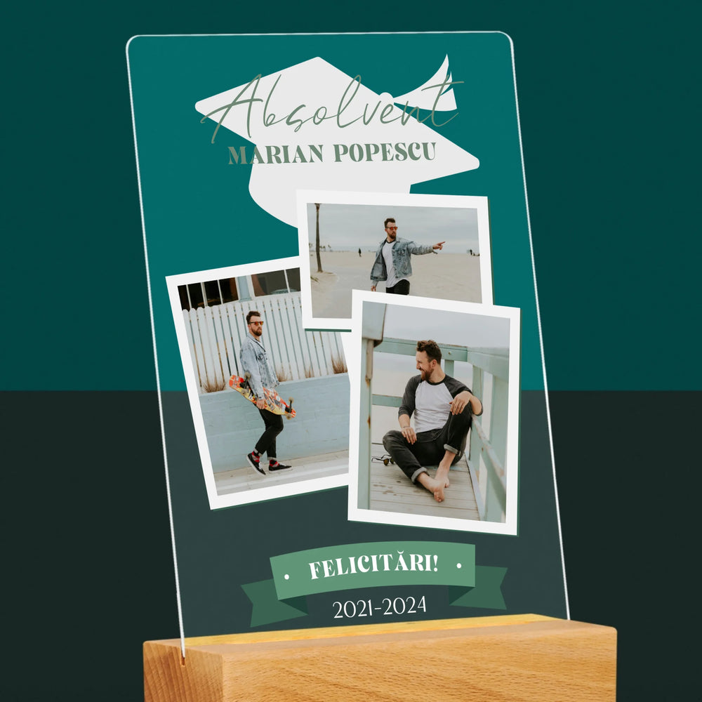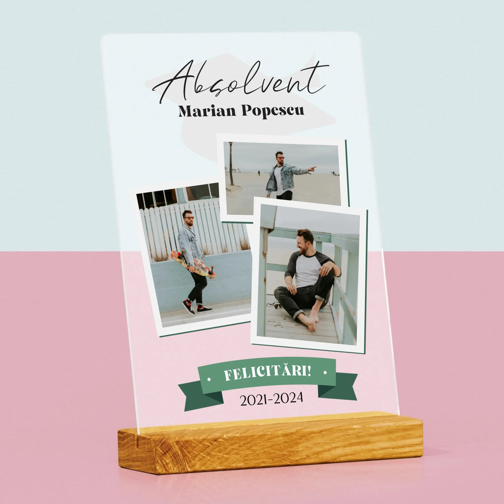 Imprimare pe sticlă acrilică incoloră (plexiglas) de 2 mm grosime cu un model personalizat la alegere.