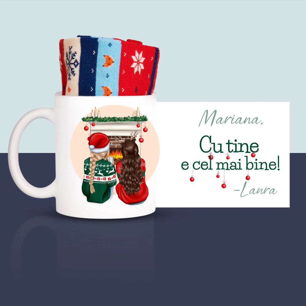 • O cană de înaltă calitate cu personalizarea aleasă de tine și șosete în interior.