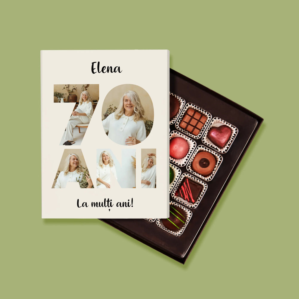 Praline delicioase din ciocolată belgiană într-o cutie elegantă cu personalizare la alegere.