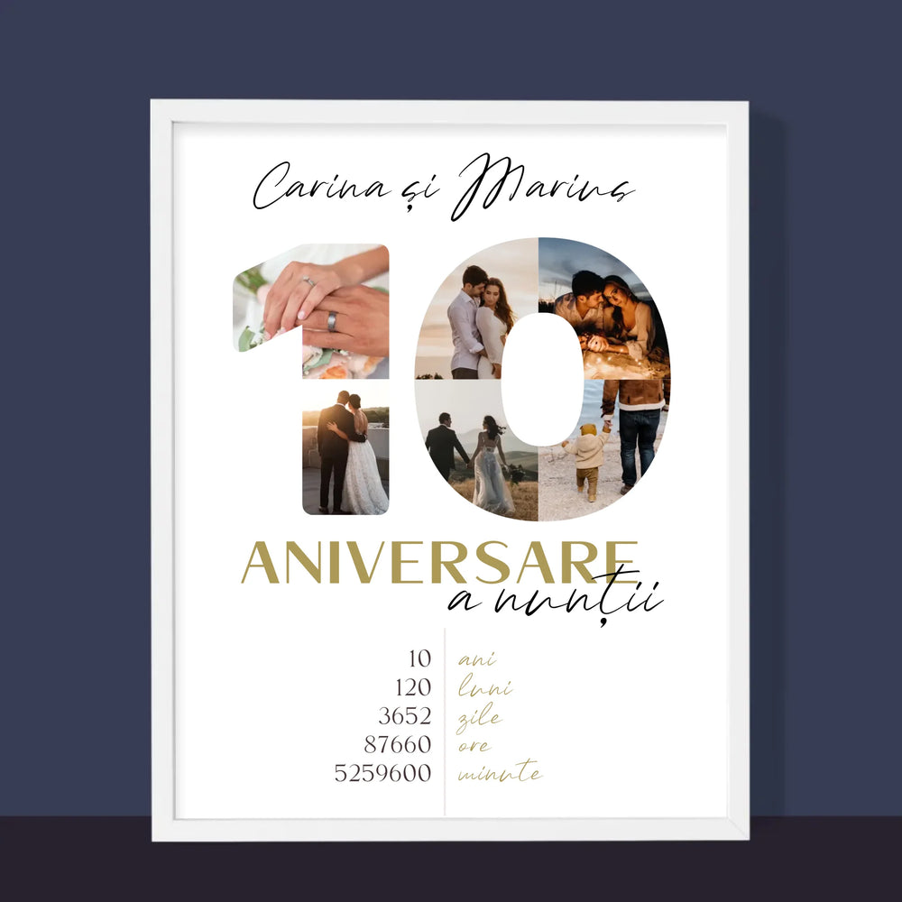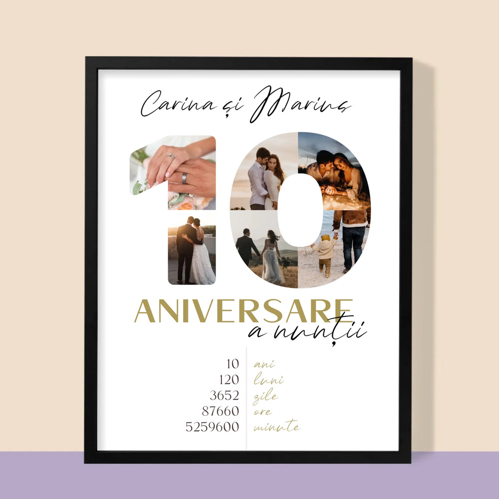 Cuvânt Din Fotografii: A 10-A Aniversare A Nunții - Imprimare cu ramă 30x40 - verticală