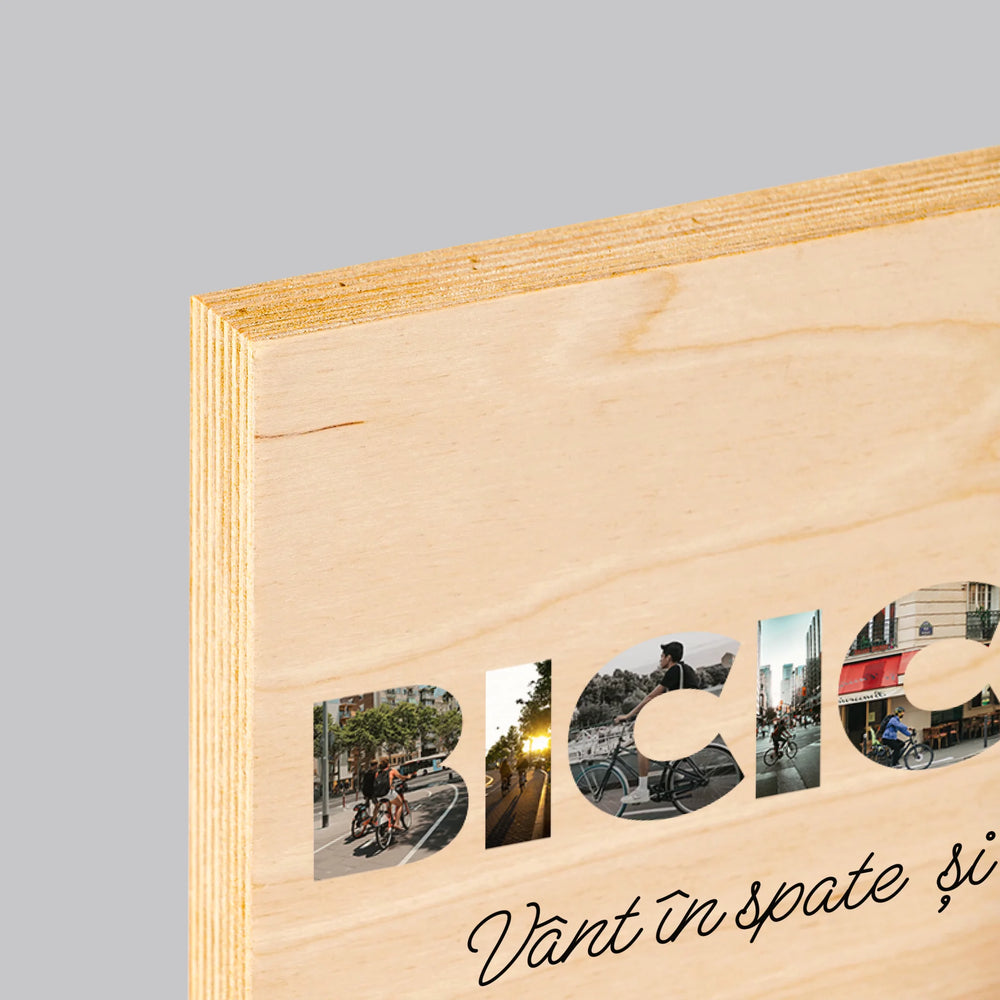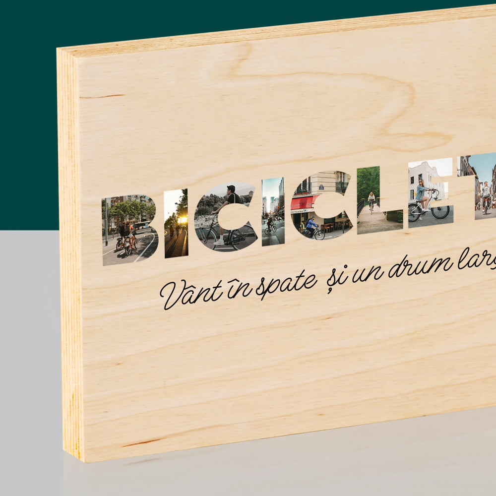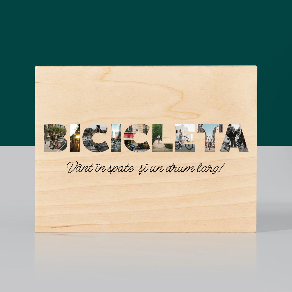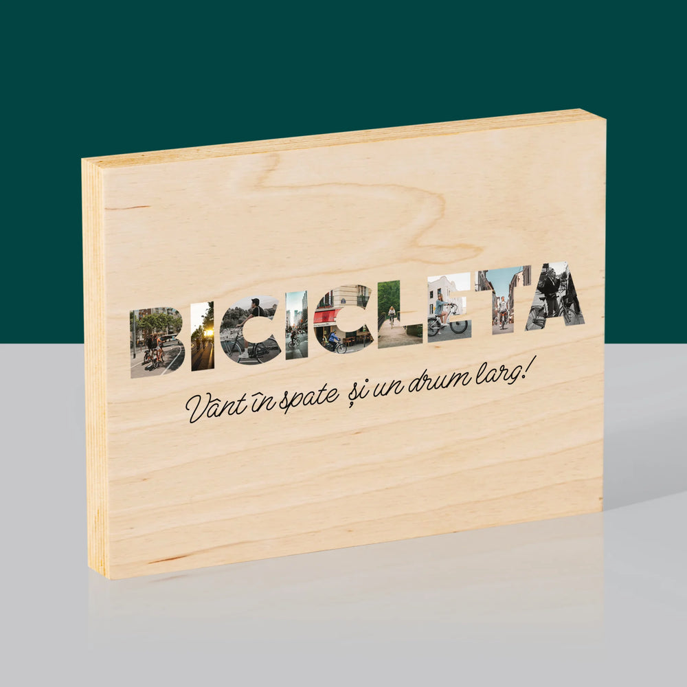 Cuvânt Din Fotografii: Bicikleta - Imprimare pe lemn - horizontală