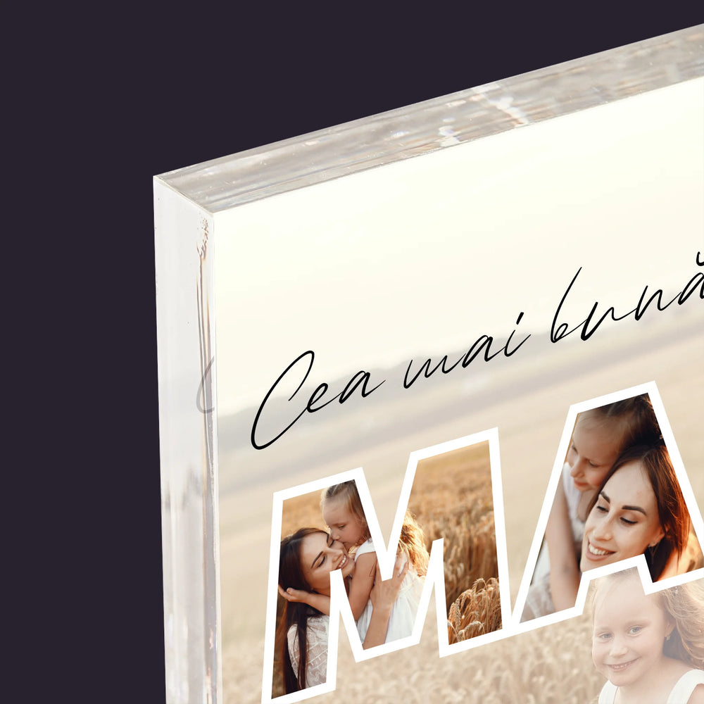 • Imprimați pe un bloc acrilic transparent (plexiglas) de 2 cm grosime pentru a vă personaliza modelul.