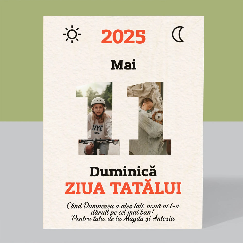 Cuvânt Din Fotografii: Felicitare Calendar Ziua Tatălui - Imprimare pe lemn - verticală