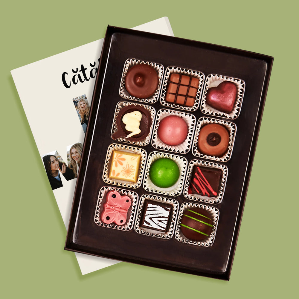 • Praline delicioase din ciocolată belgiană într-o cutie elegantă cu personalizare la alegere.
